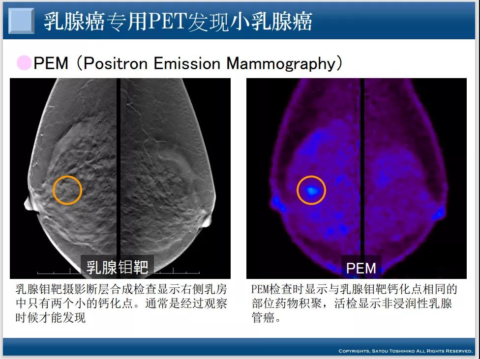 佐藤院长接下来介绍属于乳腺癌筛查的PEM检查及传统乳腺钼靶检查的对比